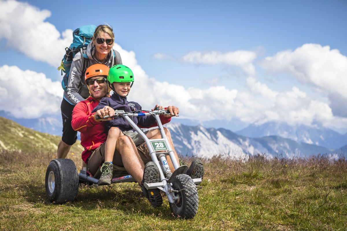 - eine Downhill-Fahrt mit den Zirbencarts (alleinige Fahrt ab 12 Jahren und 150 cm möglich).