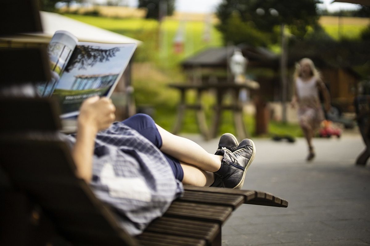 Spaziergang mit der Kräuterhexe, Klangschalenreise, Sauna, Wellness, auf der Sonnenliege ganz entspannt ein Buch lesen...: glückliche Eltern.