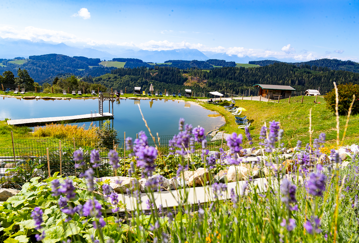 - Einzigartiger Badesee mit Sprungturm und Bergpanorama