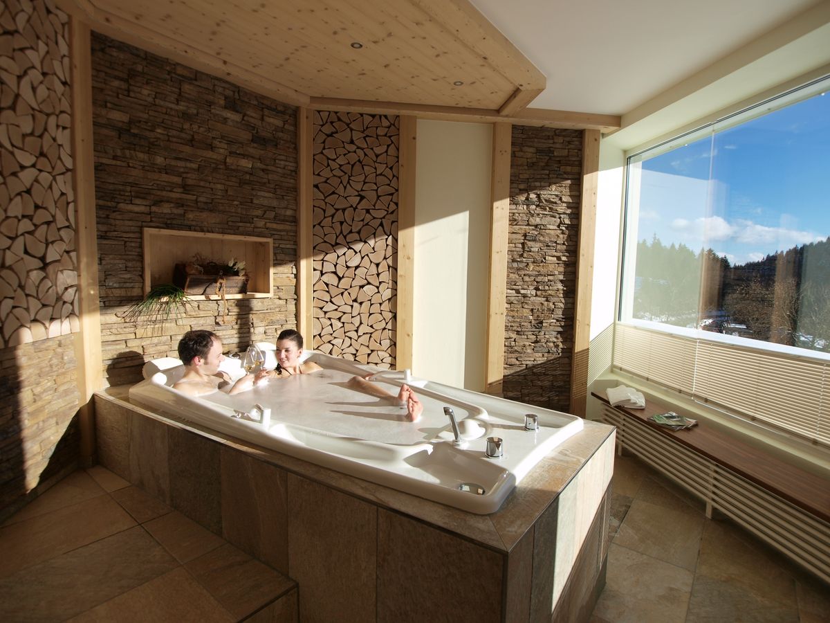 - 1x Aroma Entspannungsbad in der Paar-Whirlpoolwanne mit Panoramablick (ca. 30 min) inklusive Glas Winzersekt als Aperitif