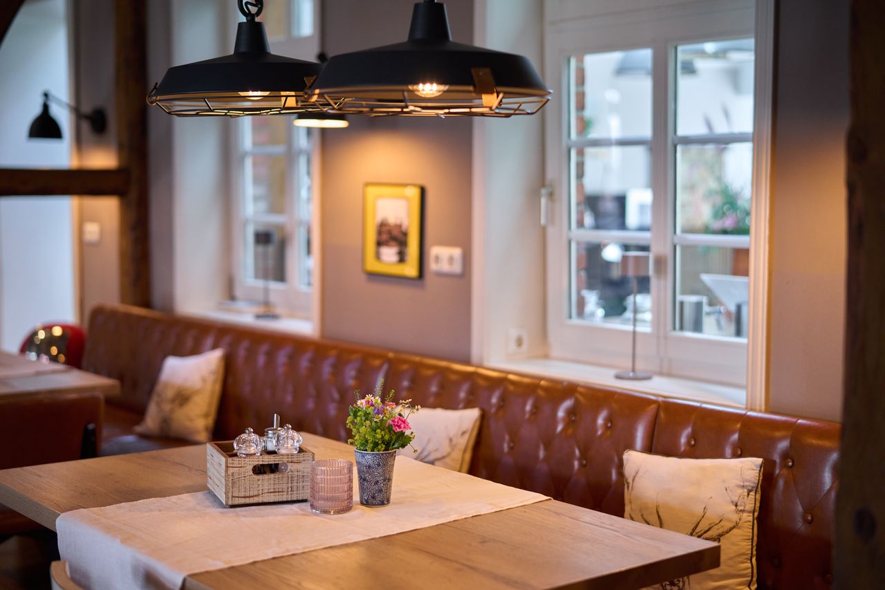 Moderne 3-Raum Familien-Suite mit Balkon und Kamin im ersten Stock des ehemaligen Schweinehauses im Herzen unseres Hofs bietet jede Menge Platz für 2 bis 5 Personen. Mit Kamin und Balkon von wo aus ihr einen tollen Blick über unseren Hof habt.