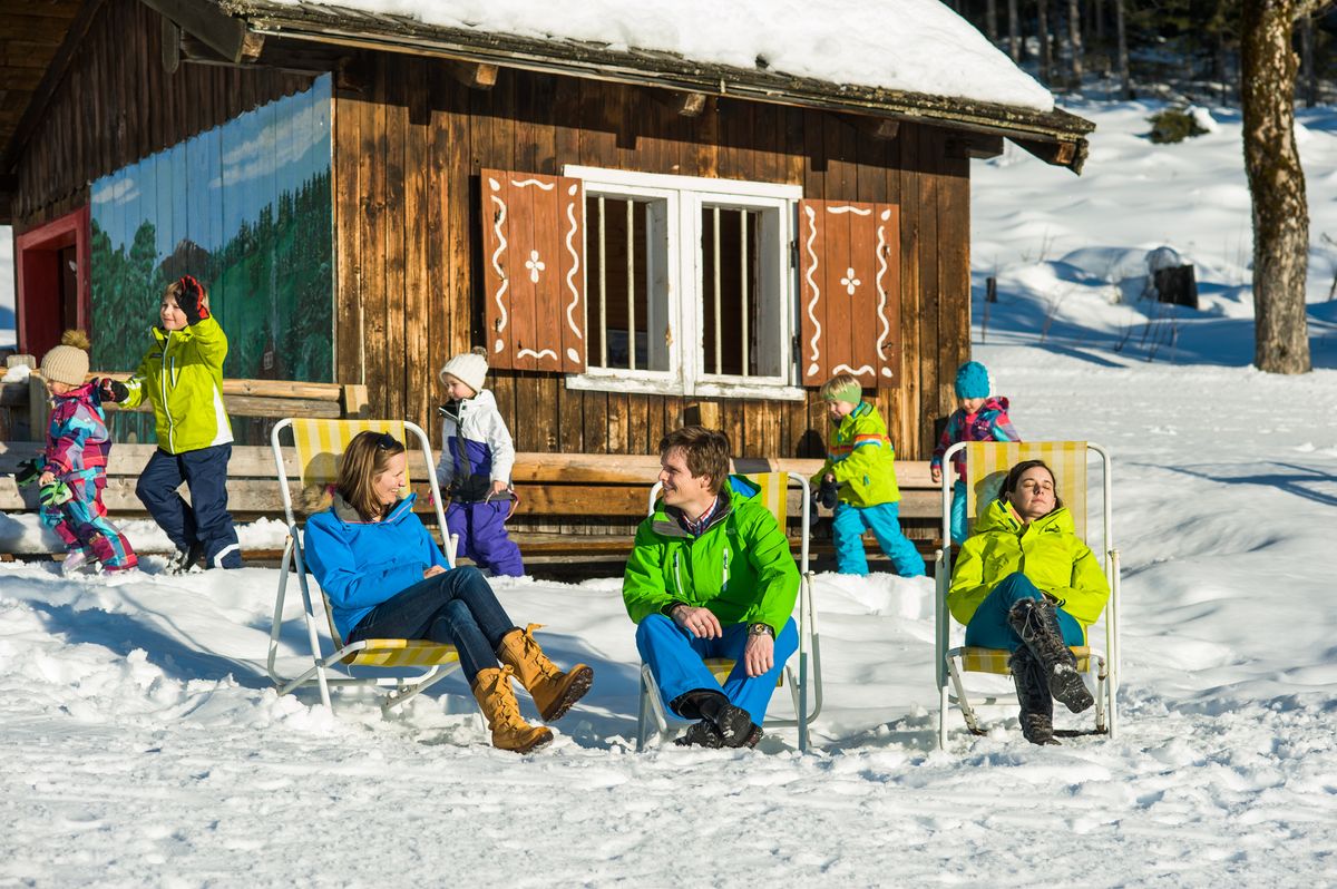 Die Kinder erkunden die Familien-Erlebnis-Welt "4 Jahreszeiten" und die Eltern entspannen in der AusZeit mit verschiedenen kuscheligen Sitzgelegenheiten. Genießen Sie den sonnigen Blick in das Ennstal.