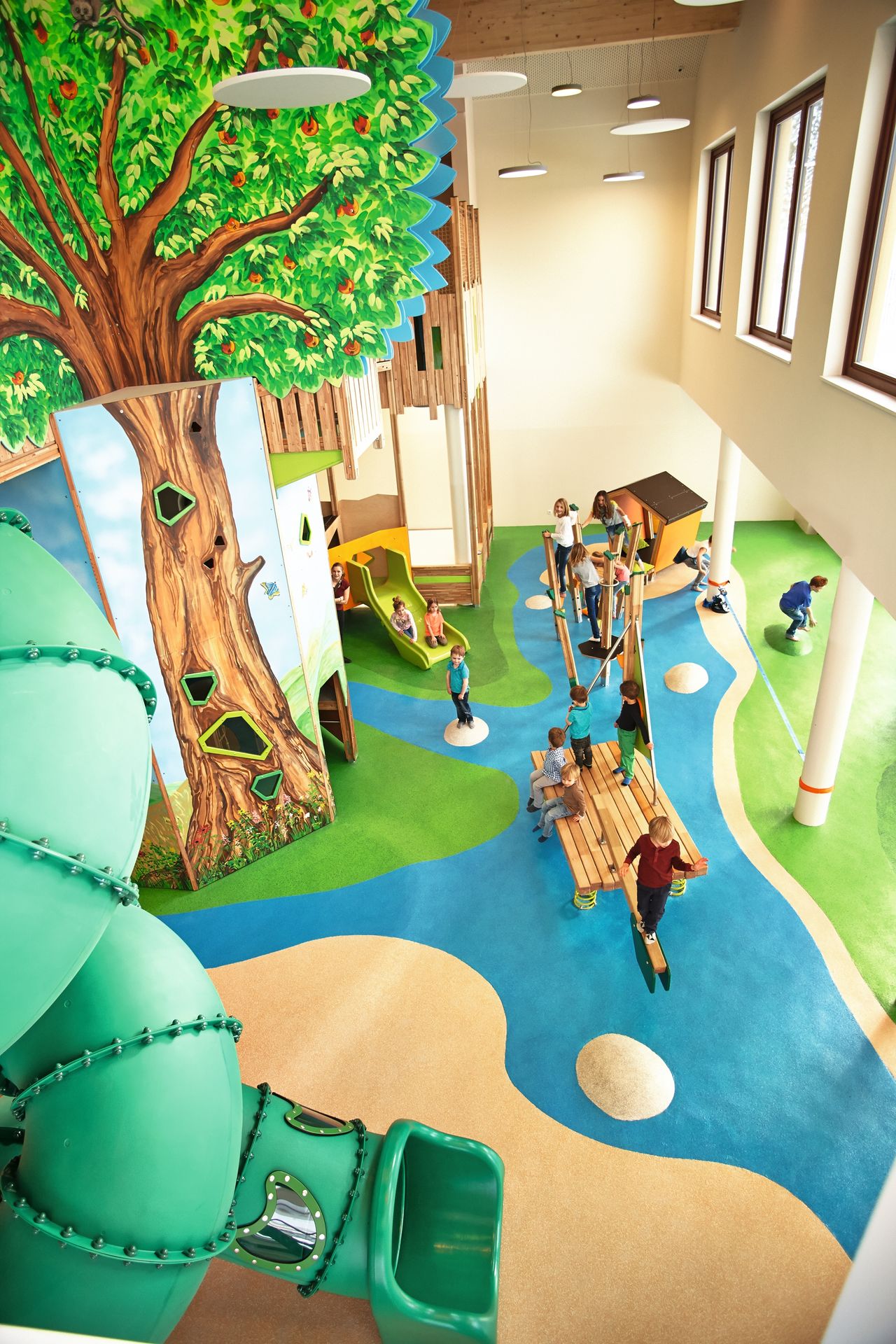 - Kleinkinder-Bereich mit Wellen-Treppe, Blätterhöhle sowie einer Kleinkinder-Rutsche
