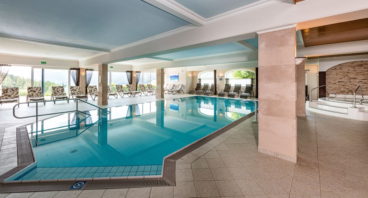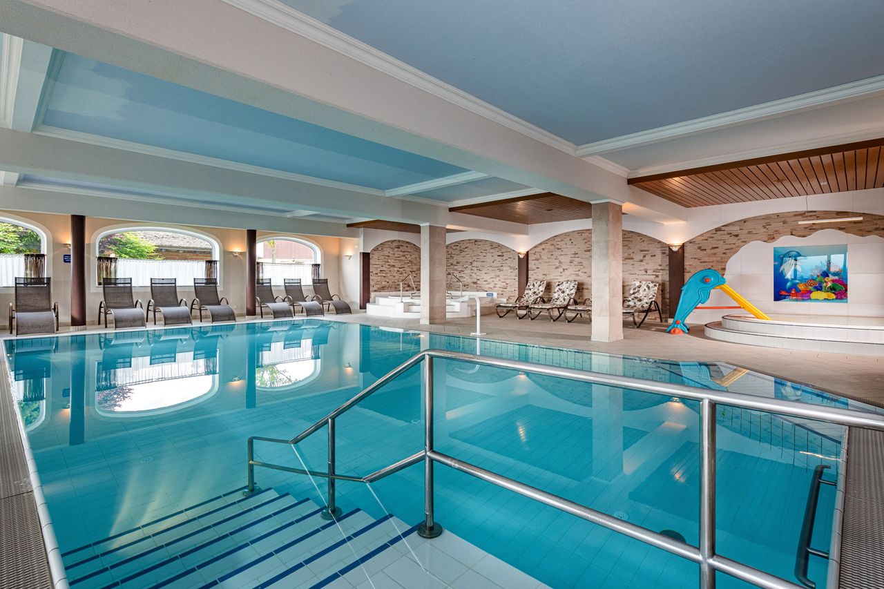 WELLNESSRelaxen Sie in unserem mit 1 Lilie ausgezeichneten Wellnessbereich. Erholen Sie sich im lichtdurchfluteten Hallenbad 29°C mit separatem Kinderbecken 32° C und Whirlpool, sowie den Familien-Relaxbereich mit extra großen Liegemöglichkeiten für die ganze Familie. Die Indoor-Saunalandschaft bietet sich für einen Familien-Saunagang mit den Kinder bestens an. Im Außen-Saunabereich - für Erwachsene und Kinder ab 18 Jahren - finden Sie 2 finnische Blockhaus-Saunen und das Entspannungshaus "AlmRuh". Bei einer wohltuenden Massage- oder Kosmetikanwendung für Erwachsene, Jugendliche, Kinder und Babys erholt sich die ganze Familie.