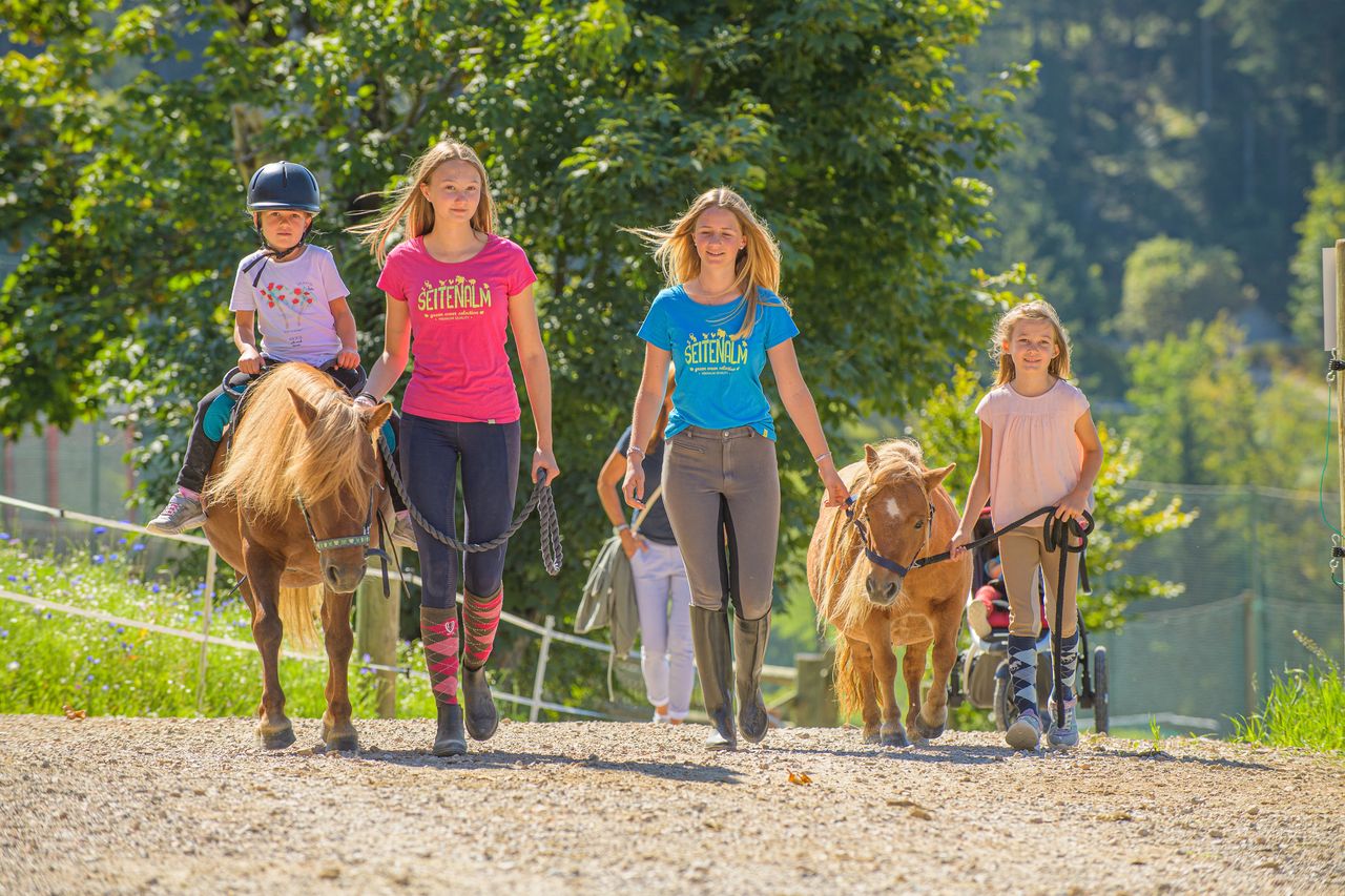 Erkunden Sie im Sommer mit Ihren Kindern rund um “Die Seitenalm****” auf 1.150 m Seehöhe die 28 Seitenalm-Outdoor-Attraktionen u. a. mit Freizeitteich zum Angeln mit Ruder- und Tretboot, Ponyreiten mit den 10 Ponys, überdachtes Sandspielhaus, Tennisplatz, Beachvolleyball- und Fußballplatz, Kinder-Wasser-Spielplatz, Tret Go-Kart Bahn, Märchen-Wanderweg sowie den Seitenalm-Tiere, uvm.