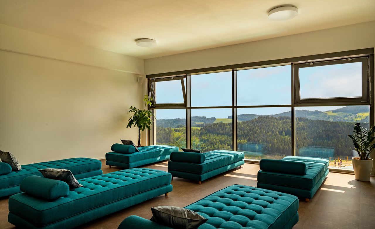- Alm-Wellnessbereich, mit mehreren Saunen, Dampfbad, Fitnessraum und Ruhezonen
