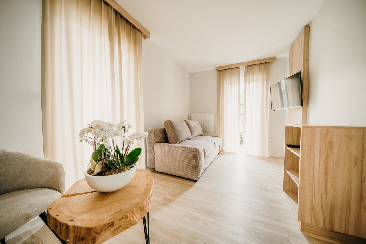 Geräumige, helle und freundliche Apartments für bis zu 5 Personen. Genießen Sie moderne Ausstattung und Rundum-Service im Familienhotel Friedrichshof.