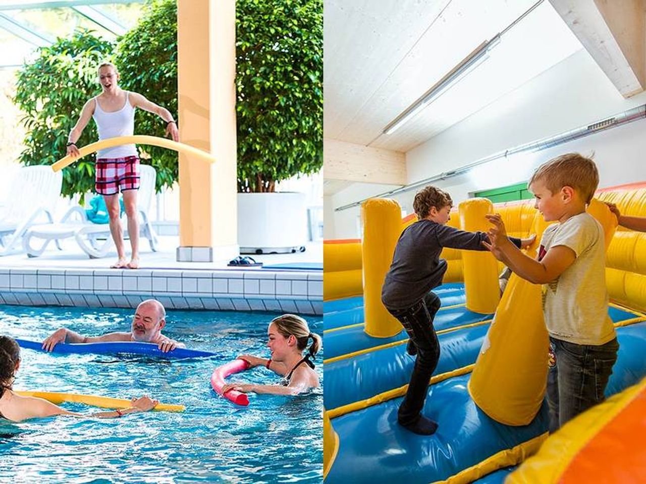 Im Erlebnisbad Aqua Rosa ist schier grenzenloser Badespaß garantiert: 550 m² Wasserfläche, verteilt auf ein 25-Meter-Becken, einen Spaßbereich, Kinderpool, Massagedüsen und Strömungskanal. Auf der Galerie tauchen Sie ein in den Wellnessbereich mit finnischer, Bio-Dampfsauna, einer Infrarotwärmekabine, Ruhe- und Massageraum. Der Wellnessbereich und die Massagen sind kostenpflichtig.