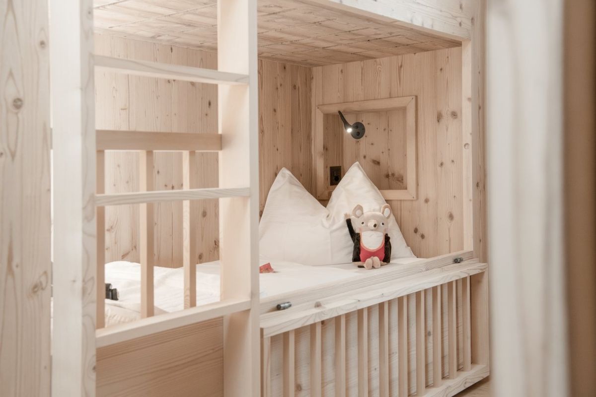 Klein, fein und mit viel Herz im Haus Gorfion: Die Familienzimmer 24 "Etagenbett 140cm" sind ideal für Eltern mit kleinen Kindern, aber auch für Alleinreisende mit Kind. Hell, praktisch und kuschelig: hier beginnt euer Familienabenteuer im Gorfion ganz entspannt. mind. Belegung: 1 Erwachsene(r) + 1 Kind max. Belegung: 2 Erwachsene + 2 Kinder bis maximal 130cm