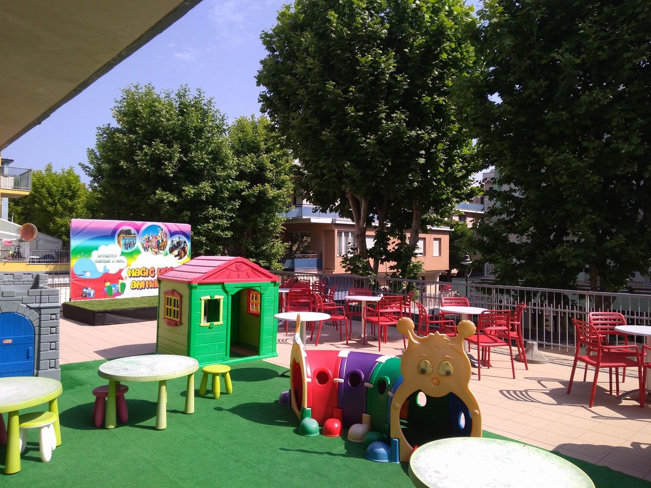 Es gibt viele Angebote für Kinder, darunter: 2 Spielbereiche mit Spielhäusern, Rutschen und weichen Teppichen, die die Fantasie der Kleinen anregen und sie frei und sicher spielen lassen.