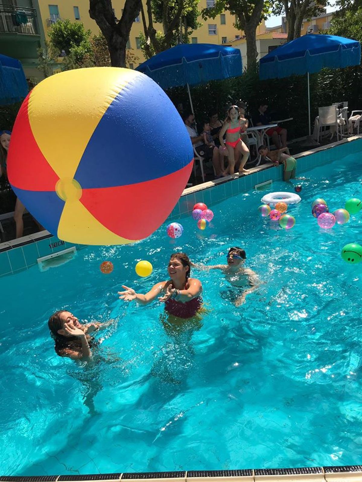 Der beheizte Pool von 90 Quadratmetern ist zweifellos die ideale Lösung, auch für Reisende mit Kindern. Im Inneren können sich die Kinder auch mit speziell für sie entwickelten Animationen vergnügen, und die Eltern können ihre Energie ohne Sorgen wiedererlangen, indem sie ihre Kinder von den bequemen Betten aus kontrollieren. Der Pool hat eine Mindesthöhe von 90 cm, während der tiefste Punkt 150 cm beträgt.