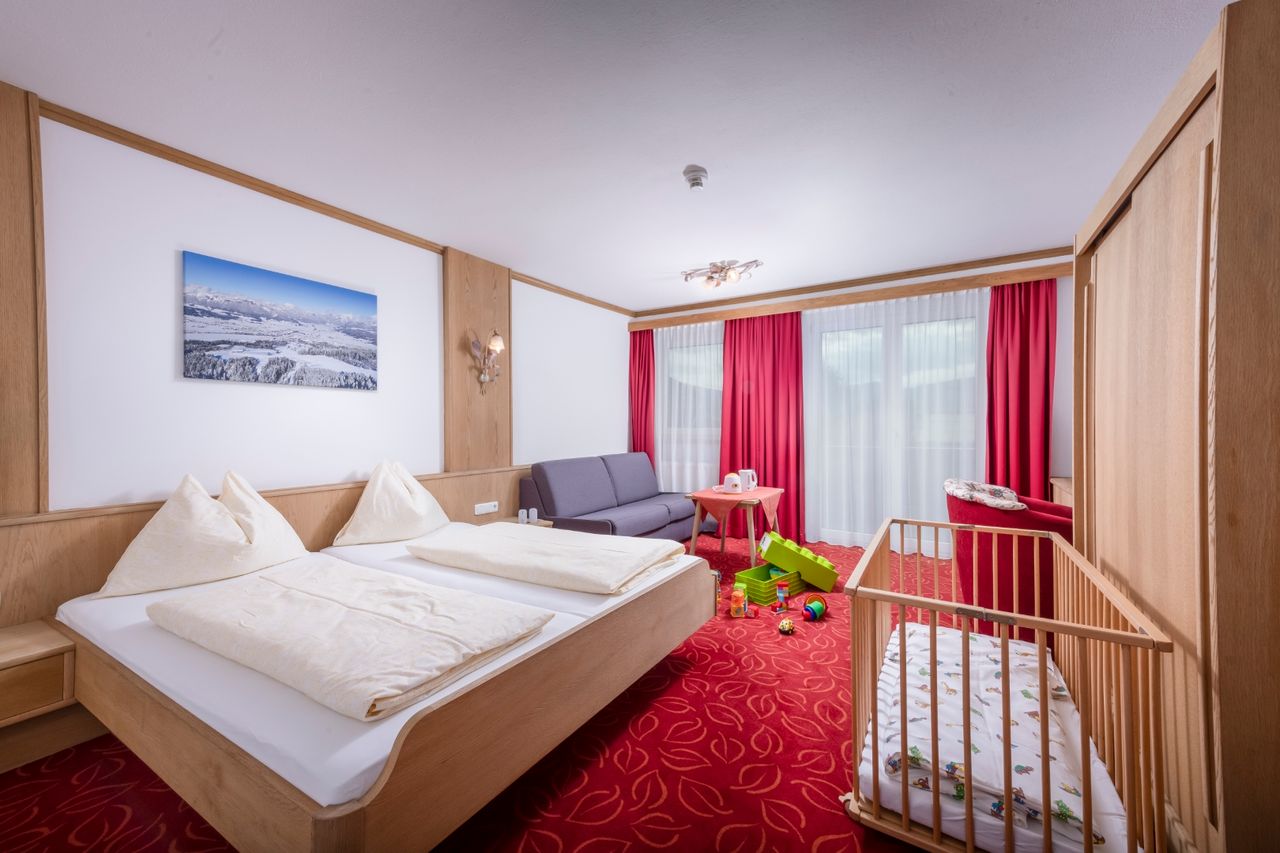 Familienzimmer Storchennest in unserer Alpenvilla Central für 3-4 Personen. Die Zimmer befinden sich ca. 50 Meter entfernt vom Hotel Central.