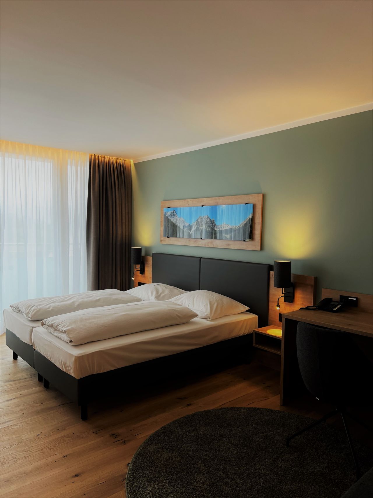 Frisch renovierte Familienzimmer für bis zu 5 Personen im Alpinen Stil mit 2 Schlafzimmern und hochwertigem Sofabett