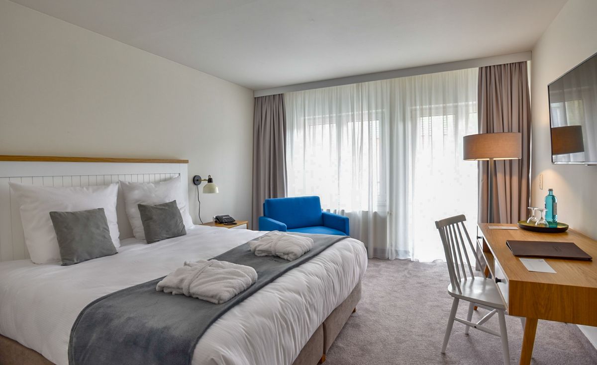 Skandinavisches Design prägt die Einrichtung der Standard Doppelzimmer im Precise Resort Marina Wolfsbruch.