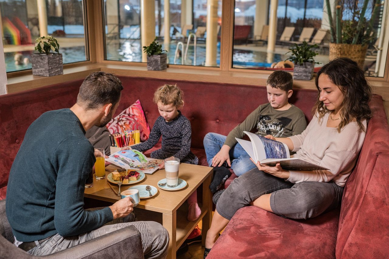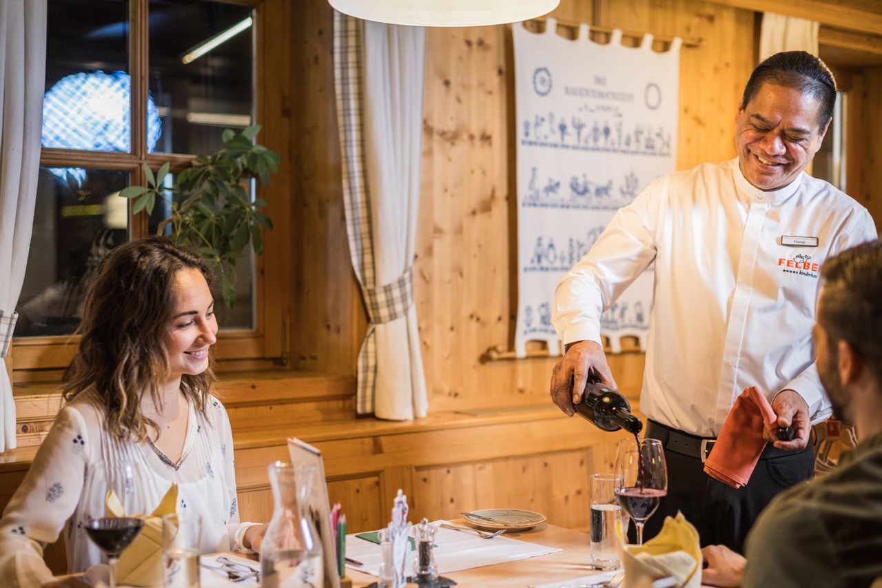 Hunger? Gibt’s nicht! Frühstücks- und Mittagslunchbuffet, Kaffee/Tee, Kuchen am Nachmittag, alkoholfreie Getränke für die ganze Familie. HiPP-Babyspeisekarte für die Kleinsten, abends Kids-Buffet, für die Eltern 5-gängige Wahlmenüs (ein fleischloses Gericht). Beim Einkauf wird großer Wert auf österreichische Produkte gelegt.