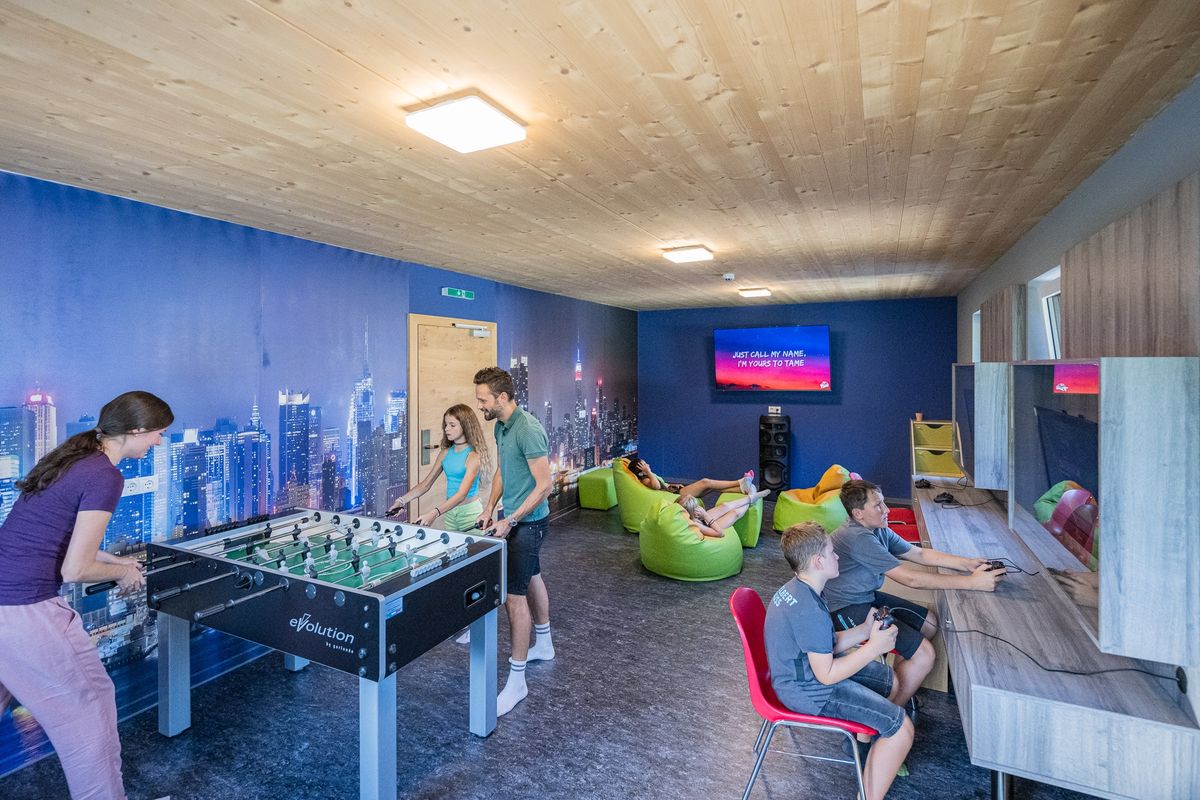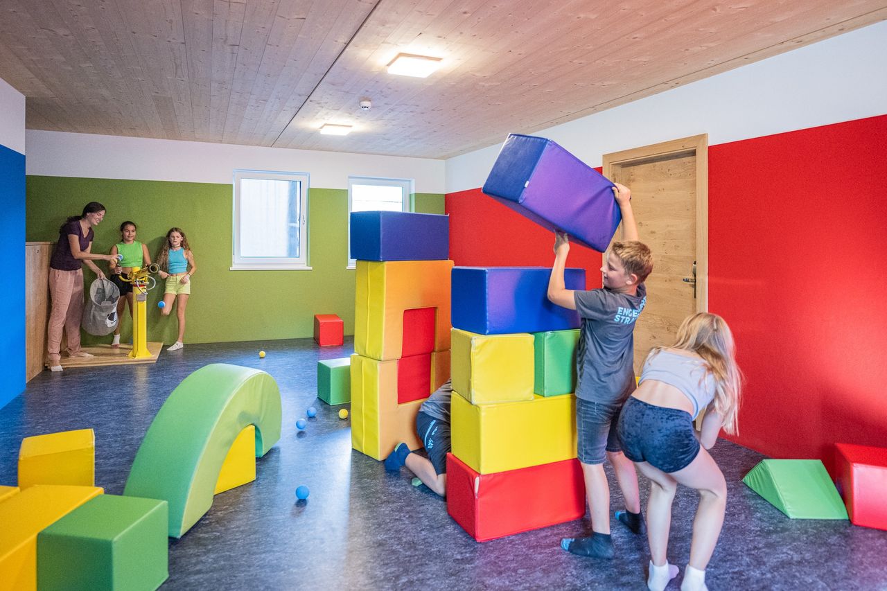 10 große Räume (820 m2) für Kinderträume: Babybetreuungsraum für Kids bis 2 Jahre, 4 Spiel- und Toberäume, Indoorfunpark mit Hüpfburg, Kino mit Showbühne, Chillraum für die Großen, Softballarena, Aktivraum mit Billard, Tischfußball und Tischtennis sowie 8.000 m² Abenteuerspielplatz. Kinder ab 3 Wochen werden die ganze Woche betreut.