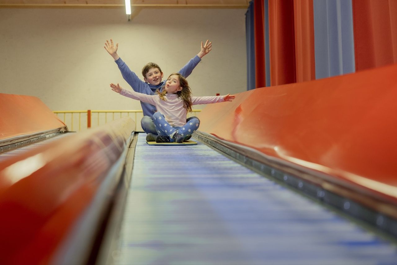 - 450 m^2 fußbodenbeheiztes Indoor-Tobeland mit Softplay uvm.