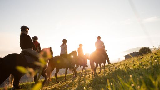 Ein Reitplatz und ein Reitrundweg befinden sich direkt am Hof, geführte Ausritte runden das Angebot rund ums Reiten ab.