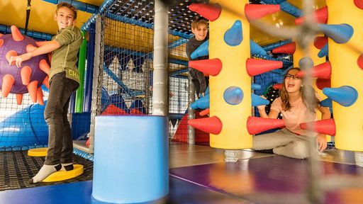 - Aktivspielraum: auf zwei Etagen warten jede Menge Action und Spielmöglichkeiten für die ganze Familie. Von der abenteuerlichen Softplayanlage mit Rutsche und Kletterelementen über einen Motorikbereich bis hin zur kreativen Riesen-Lego-Ecke. Ein eigener Spielbereich für Babys und Kleinkinder sowie ein Indoor-Trampolin machen den Bereich zur perfekten Indoor-Spielwelt für Familien mit Kindern – wetterunabhängig, vielseitig und voller Bewegungsspaß.