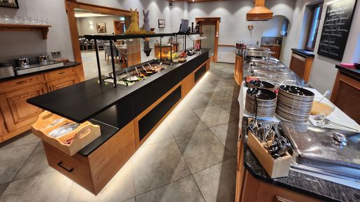 Mit eigener Kinder-Frühstücksecke mit frischem Obst, großer Müsli-Auswahl, Saftbar zum Selbstzapfen sowie kindgerechtem Besteck und Geschirr. Auch eine professionelle Kinderbetreuung durch geschultes Personal wird angeboten, so dass die Eltern auch mal alleine ausgehen können.